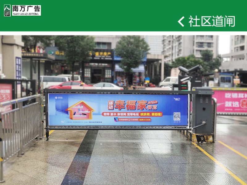 社區道閘戶外廣告具有強烈的視覺沖擊力,近距離審定受衆面,無其他廣告幹擾,